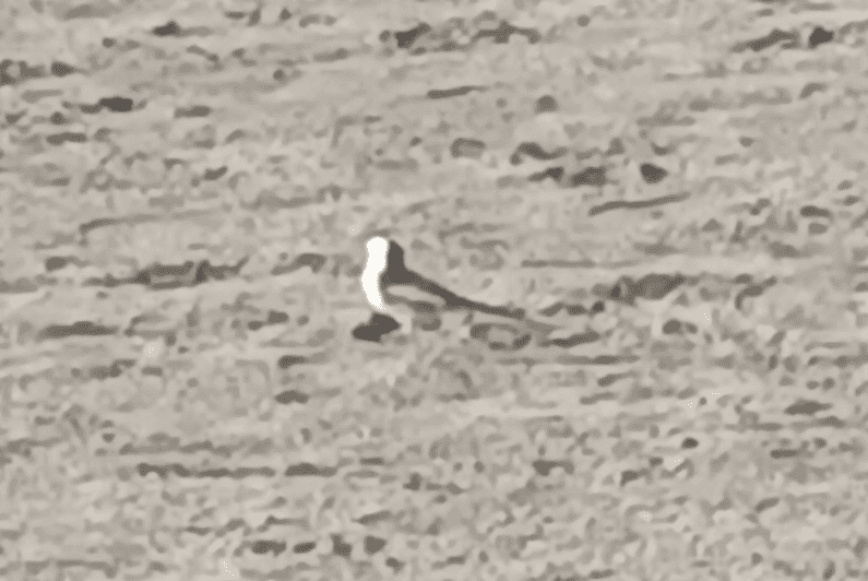 でも、今日は、地面を歩いて何かしている... 葉っぱをくわえている。