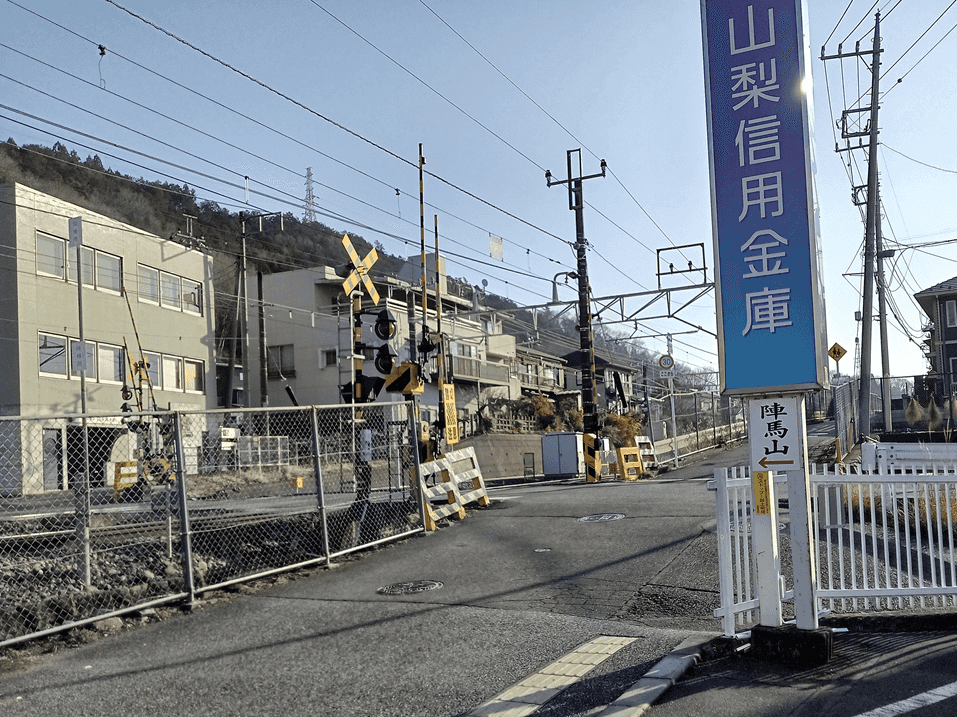 中央本線を横切ります。このあと高速道路の下を通ります。